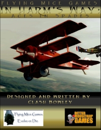In Harm's Way: Dragons! What if the wars of the Napoleonic Era were fought with dragons as well as armies and ships? With In Harm's Way: Dragons! you can answer that question. This game contains all the rules necessary, along with a random dragon generator and example dragons. You can play this game in any period from the American War of Independence to the Crimean war, though it concentrates on the Napoleonic wars. French, British, and American human and dragon characters are supported. In Harm's Way: Aces In Spades Set during the Great War, World War I, you can play fighter pilots, staff officers, and ground crew of the French, British, German, and American aerial forces. With a powerful specialized tactical dogfighting system, your plane becomes an extension of your character as he struggles to survive this brutal war in vehicles made of wood, cloth, and wire. In Harm's Way:Aces And Angels Set in the Second World War, you can play fighter pilots, staff officers, and ground crew of the American, Soviet, British, German, Italian, or Japanese armed forces. With a powerful specialized tactical dogfighting system, your plane becomes an extension of your character as he struggles to survive the carnage and insanity of the war. In Harm's Way:Wild Blue In Harm's Way: Wild Blue, a game of Modern Mercenary Action. Create your own Mercenary Company, Design your own Contracts, and play mercenaries on the ground, air, or water. Helicopters, SpecOps, Fighter Jets, Tanks, and Patrol Craft are all covered. |